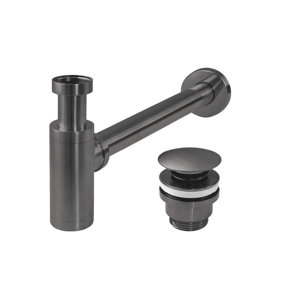 Rea, umývadlový sifón s univerzálnou odtokovou zátkou Click-Clack, grafitová, REA-A1562