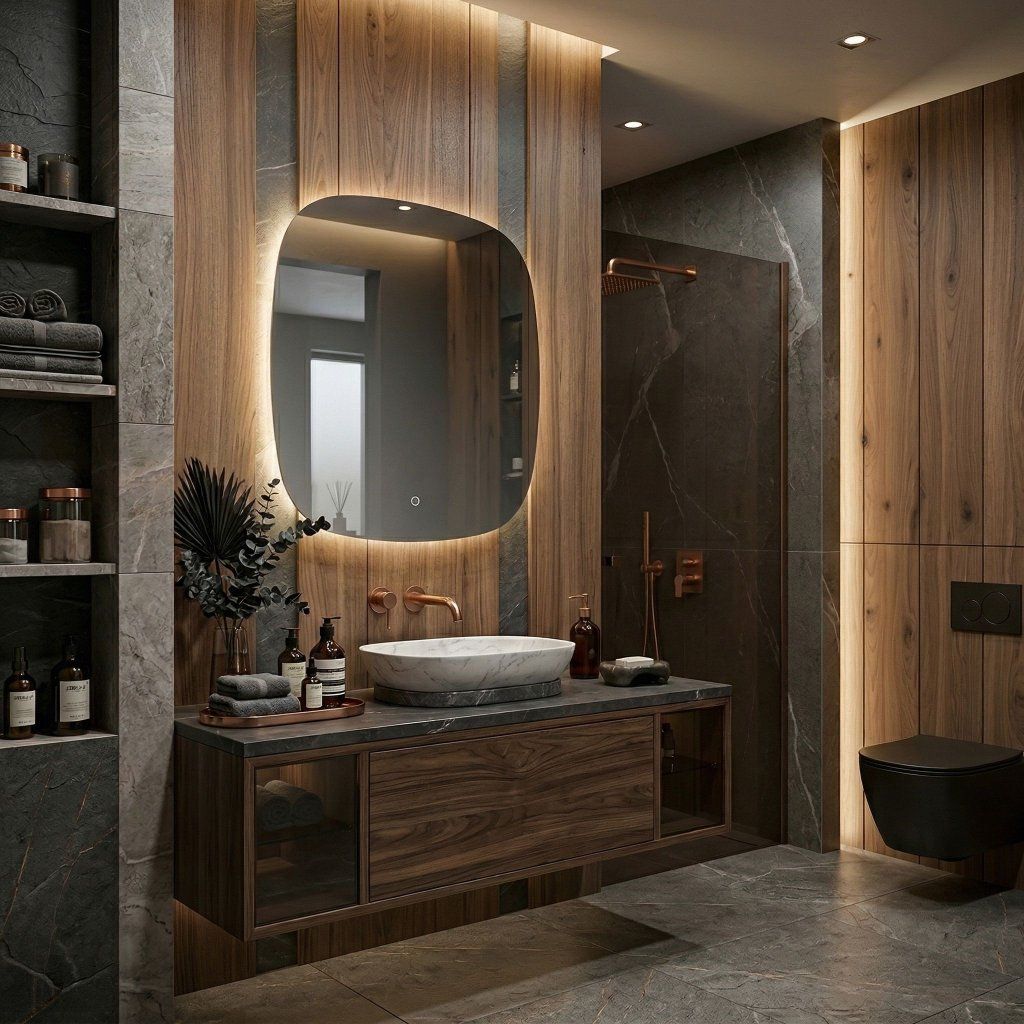 Štvorcový formát 700 × 700 mm je obzvlášť vhodný pre kúpeľne s centrálne umiestneným umývadlom alebo umývadlovým stĺpom, kde symetrické zrkadlo prirodzene dopĺňa osovú kompozíciu celého priestoru. Rovnaká šírka aj výška vytvára optickú rovnováhu, ktorú obdĺžnikové zrkadlá nad symetrickým zariadením nedosahujú.