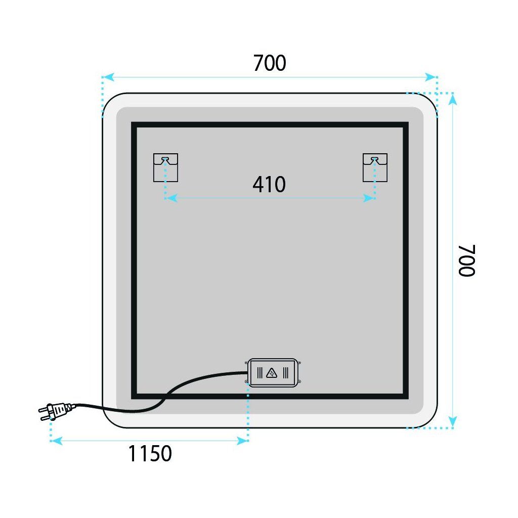 Nástenná montáž je pevná a pri správnom ukotvení drží zrkadlo stabilne počas celej životnosti. Štvorcový formát 700 × 700 mm s mliečnym svetelným rámikom pôsobí na stene ako dekoratívny svetelný objekt — esteticky príťažlivý aj vtedy, keď nesvieti, a ešte výraznejší pri zapnutom osvetlení.