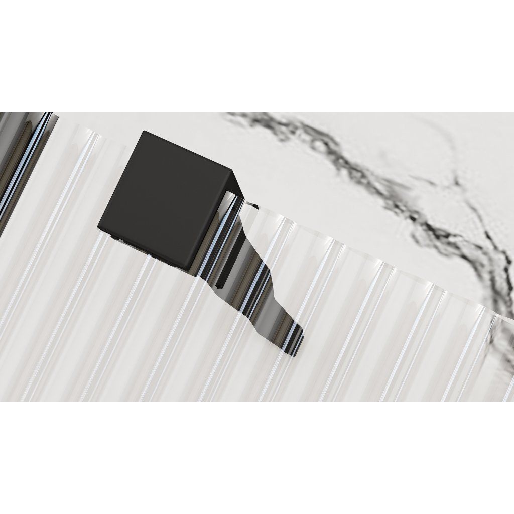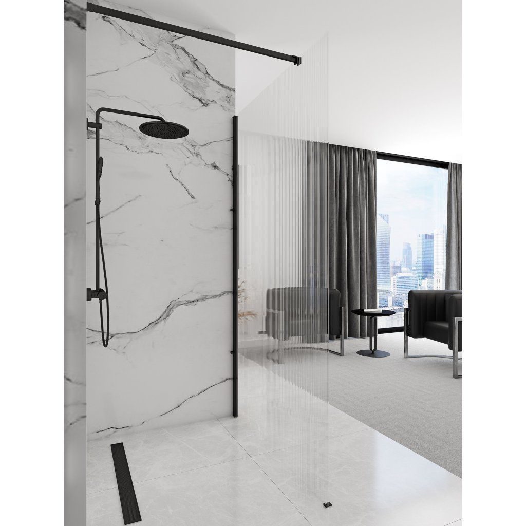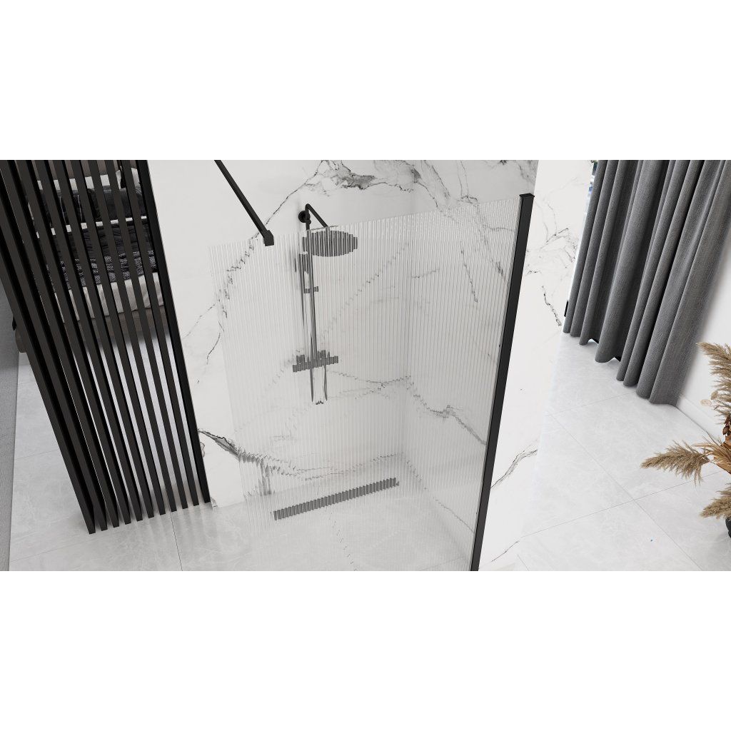 Stena je vyrobená z kvalitného vlnitého tvrdeného skla. Je vhodný na inštaláciu na sprchovú vaničku alebo podlahu s lineárnym odtokom. Čierne prvky boli laserom potiahnuté 4-násobným povlakom zo smaltu najvyššej kvality. Vďaka tejto technike sú hliníkové sklenené prvky chránené pred koróziou, zakalením a zmenou farby.