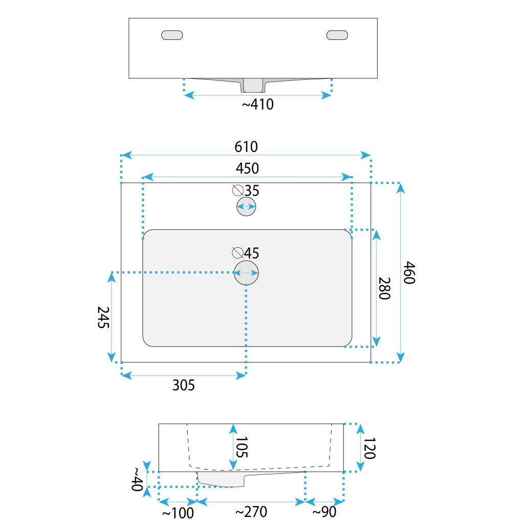 Rea Alison, umývadlo na dosku 610x460x120 mm, biela lesklá, REA-U6021