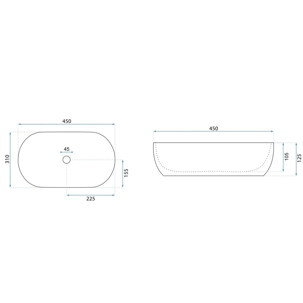 Rea Amelia, umývadlo na dosku 450x305x125 mm, biela lesklá, REA-U4330
