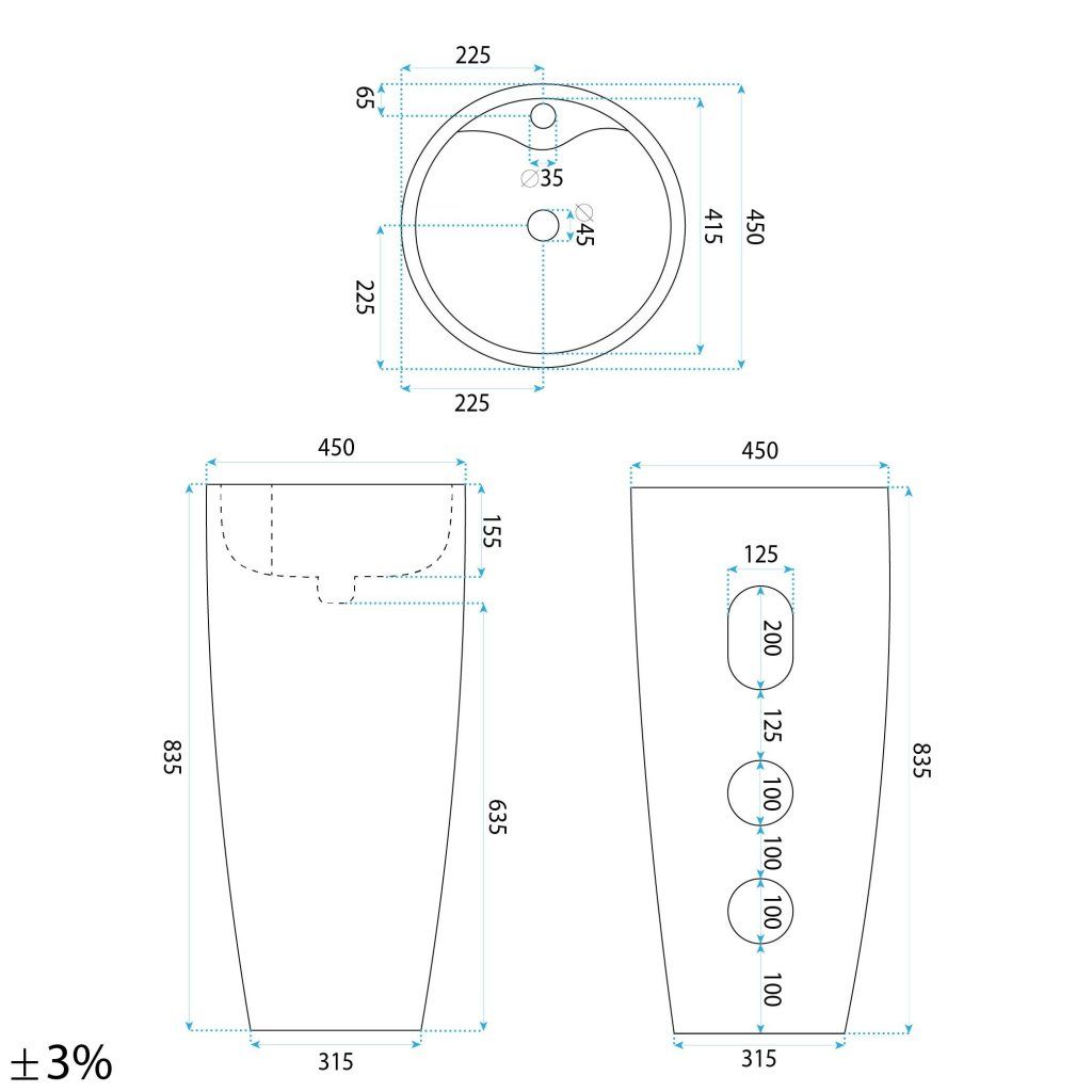 Rea Anya Savana Matt, voľne stojace umývadlo 840x450x450 mm, imitácia kameňa, REA-U3614