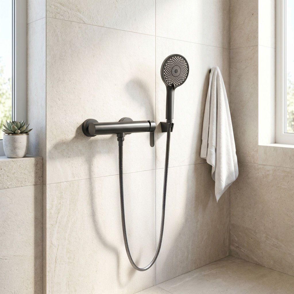 Minimalistická valcová silueta s ukrytým prepínačom funkcií si zachováva čistú modernú líniu — ideálnu voľbu pre interiéry v štýle loft, industrial alebo dark moody bathroom.