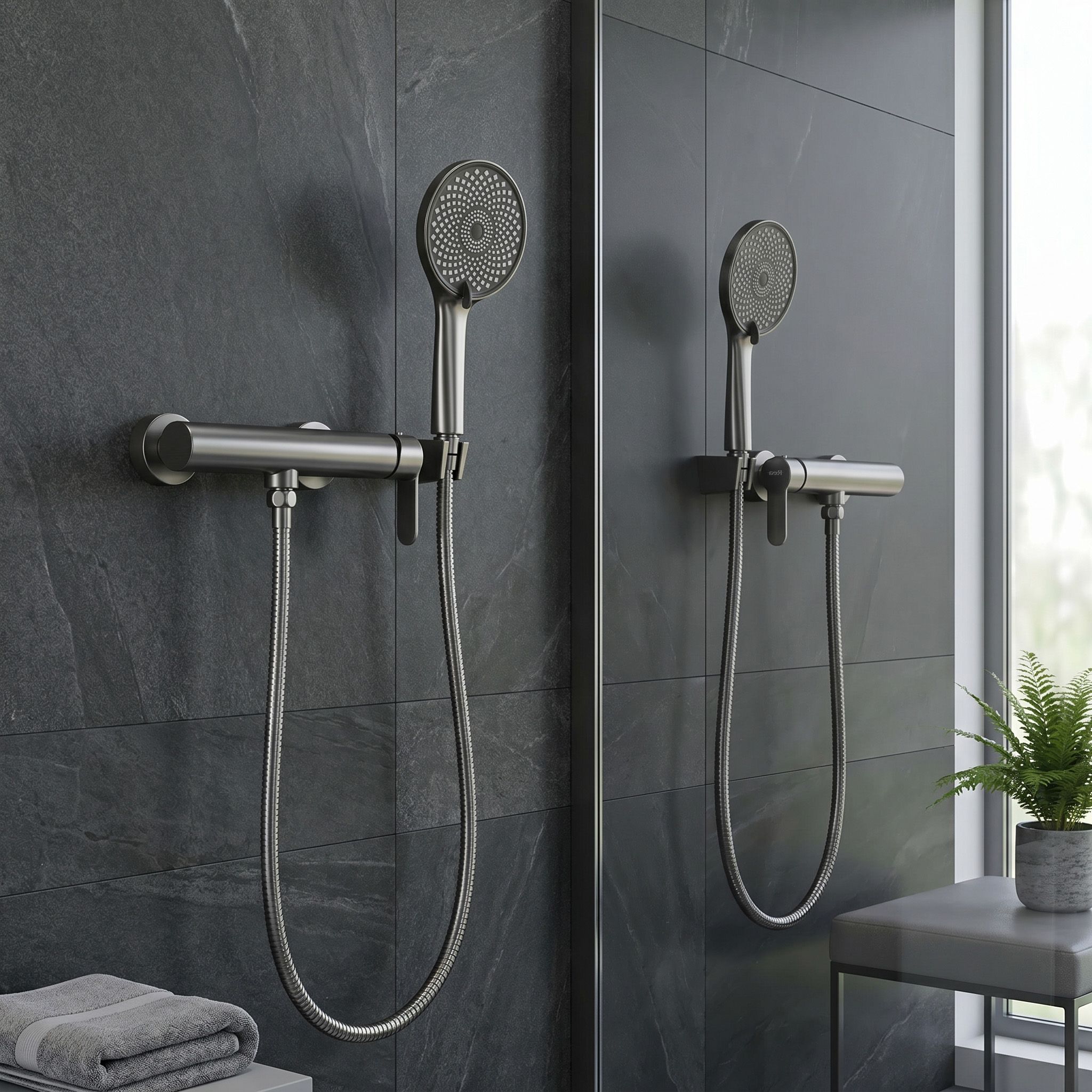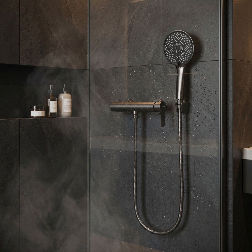 Rea Arcos, nástenná sprchová batéria s ručnou sprchovou súpravou, grafitová, REA-B6685