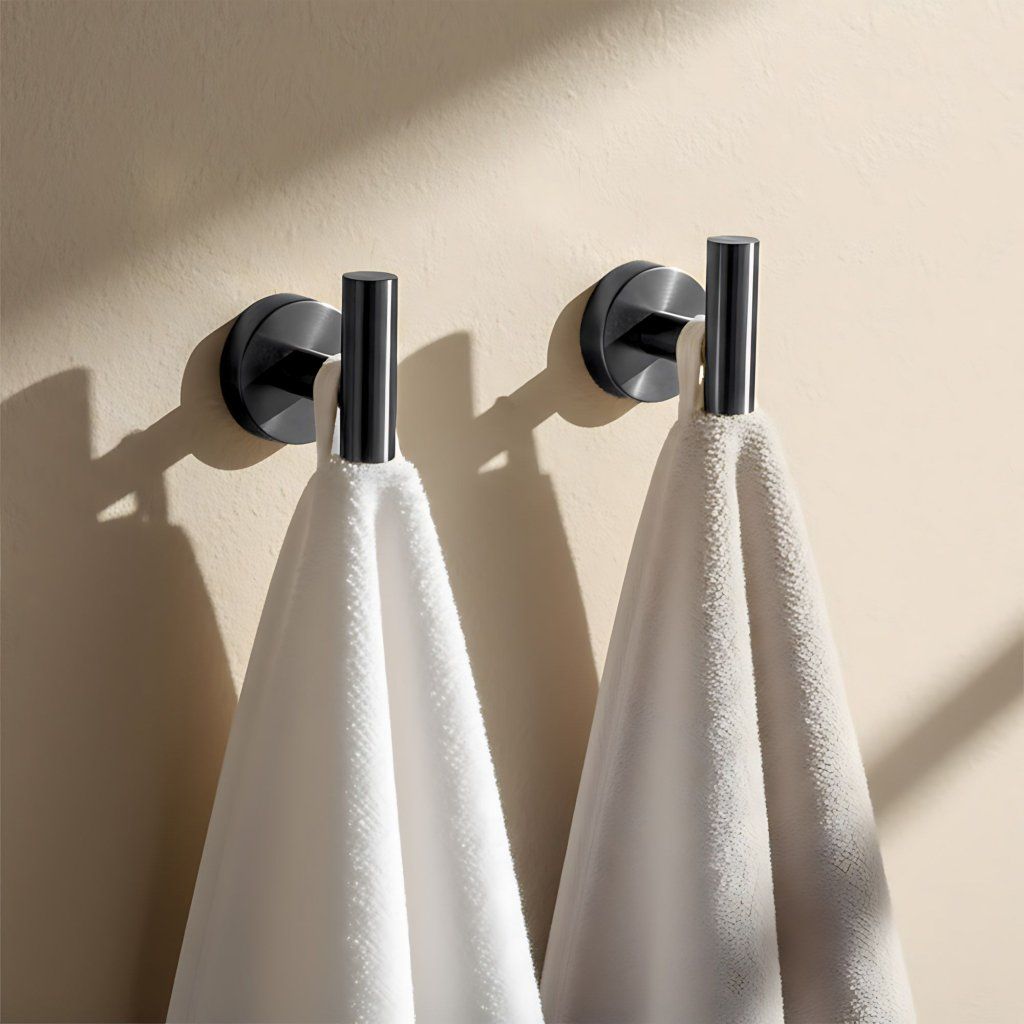 Sada obsahuje všetky kľúčové kúpeľňové doplnky na jednom mieste: držiak na uterák, držiak na toaletný papier a dva háčiky. Vďaka jednotnému dizajnu a farebnej konzistencii celá súprava pôsobí kompaktne a premyslene v každej kúpeľni.