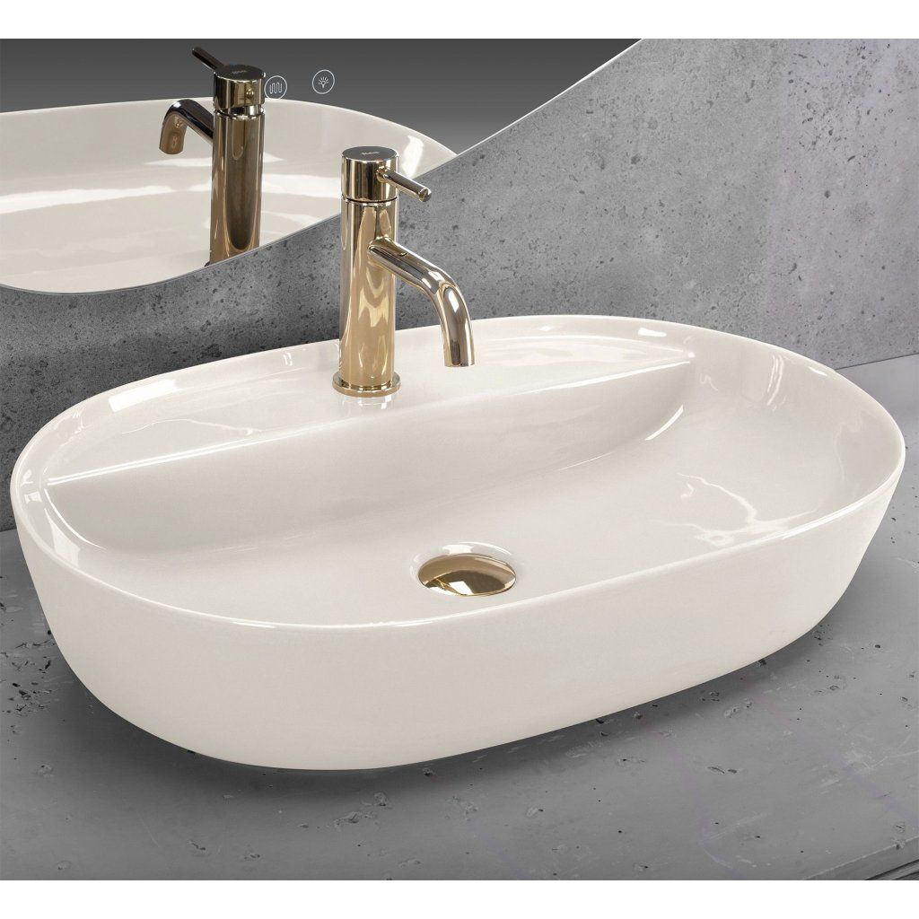 Rea Aura, umývadlo na dosku 610x410x130, ecru lesklá, REA-U4589