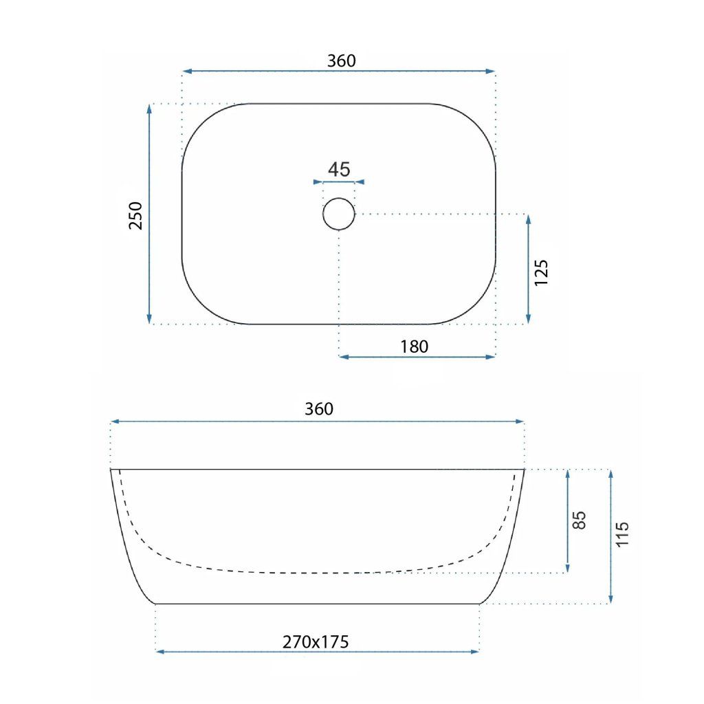 Rea Belinda Mini, umývadlo na dosku 360 x 255 x 115 cm, imitácia kameňa matná, REA-U4700