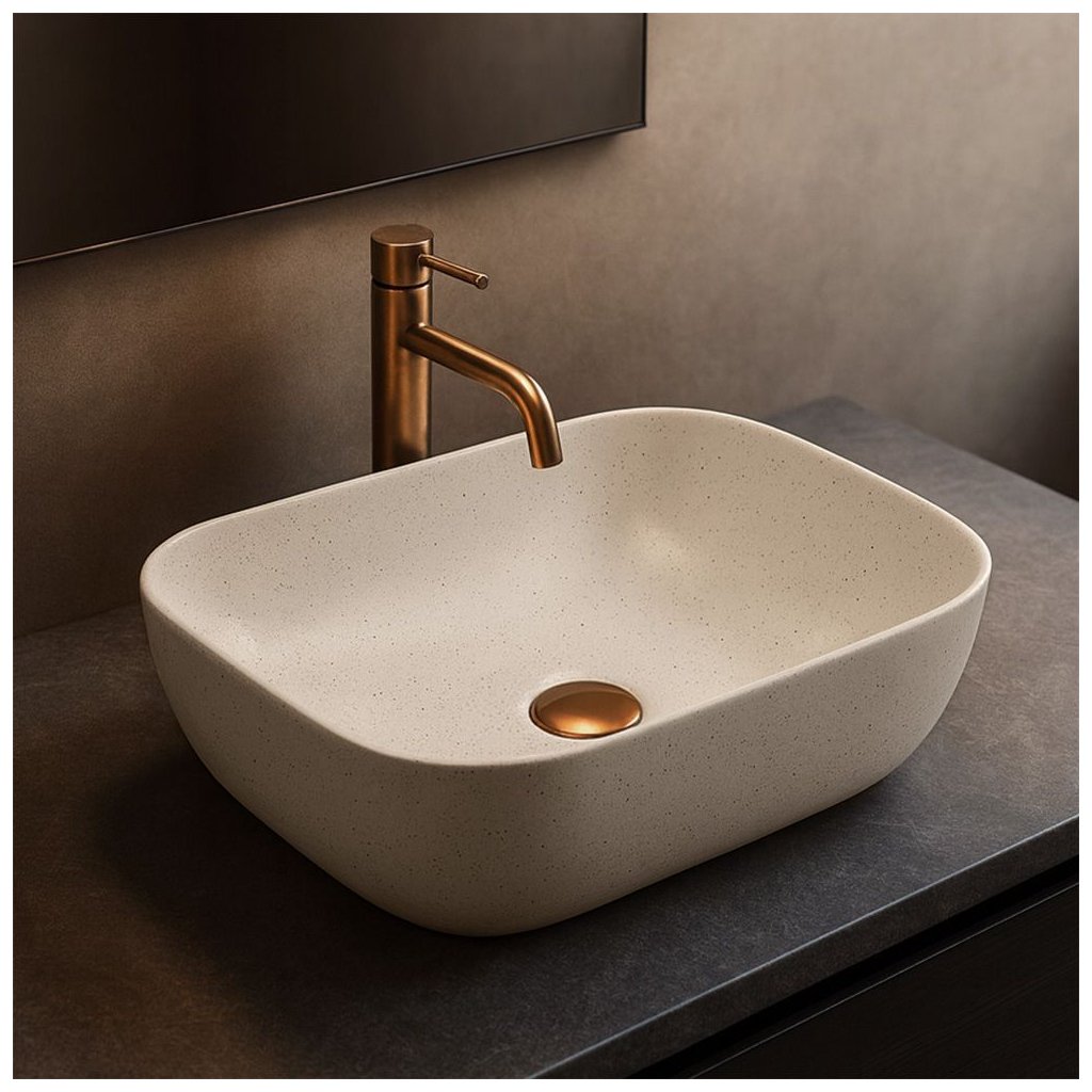 Rea Belinda Sandy, umývadlo na dosku 465x300x135 mm, imitácia kameňa-béžová, REA-U4000