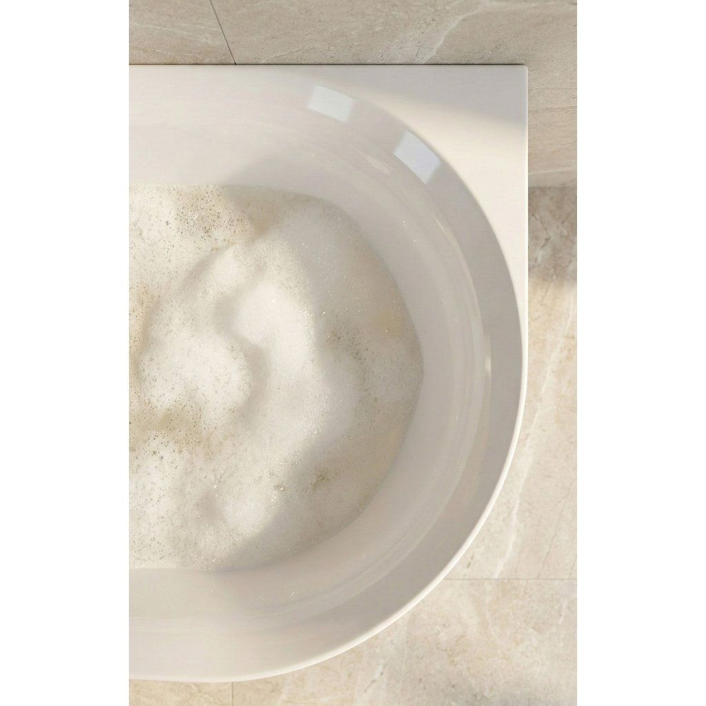 Vaňa je vyrobená zo snehovobieleho sanitárneho akrylu, ktorý má nízku tepelnú vodivosť — voda sa v akrylovej vani ochladzuje pomalšie ako v kovovej alebo keramickej vani rovnakých rozmerov, čo predlžuje čas pohodlného kúpania bez nutnosti dopúšťania teplej vody. Hladký povrch bez pórov sa ľahko čistí a dlhodobo si zachováva biely, bezchybný vzhľad bez žltnutia alebo matovenia.