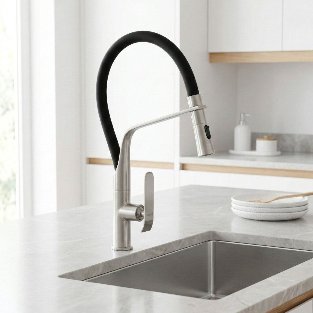 Rea Castor je moderná kuchynská batéria, ktorá spája vysokú funkčnosť s elegantným dizajnom. Kombinácia flexibilného výtoku a povrchovej úpravy brúsená oceľ vytvára štýlový a praktický prvok kuchynskej zóny. Vysoké telo batérie spolu s pohyblivým výtokom poskytuje maximálnu voľnosť pri práci pri dreze a výrazne uľahčuje každodenné kuchynské činnosti.