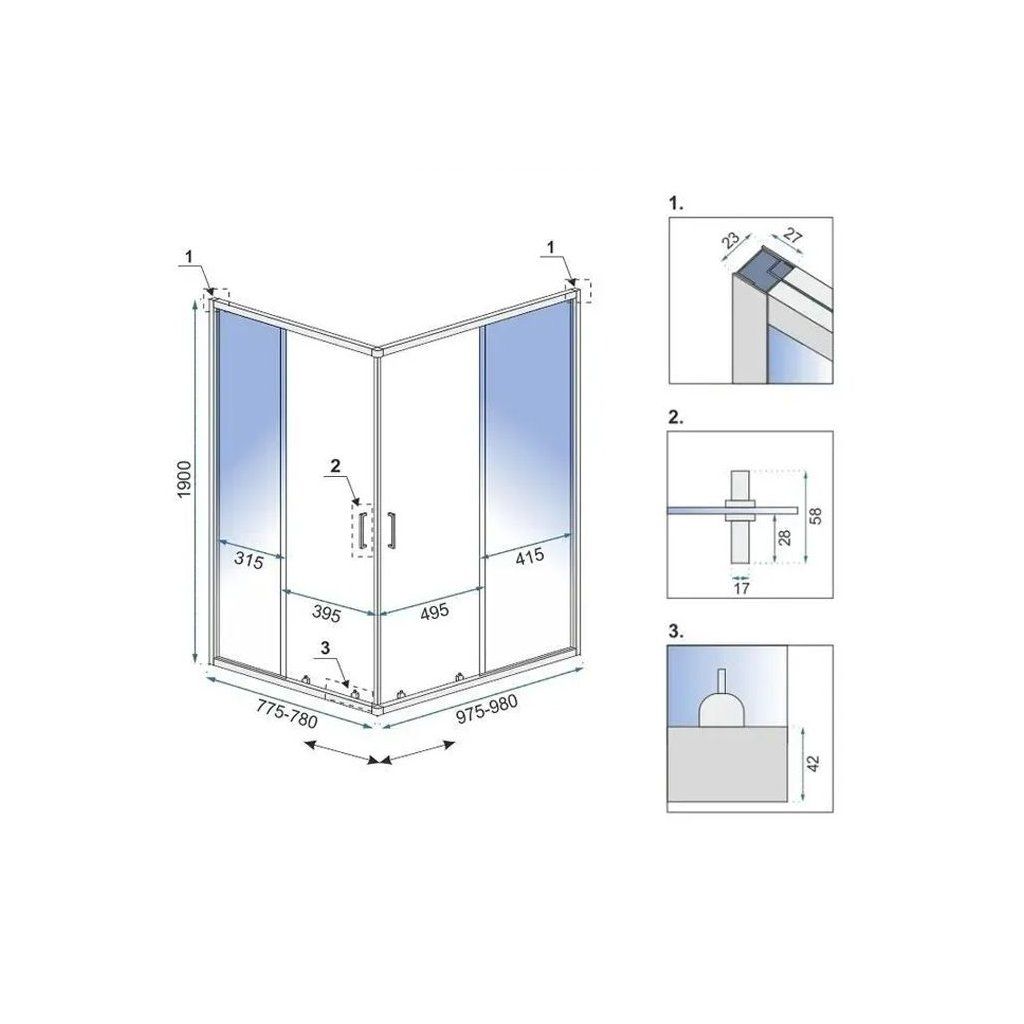| Typ: | Rohový - 2-stranný, posuvné dvere |