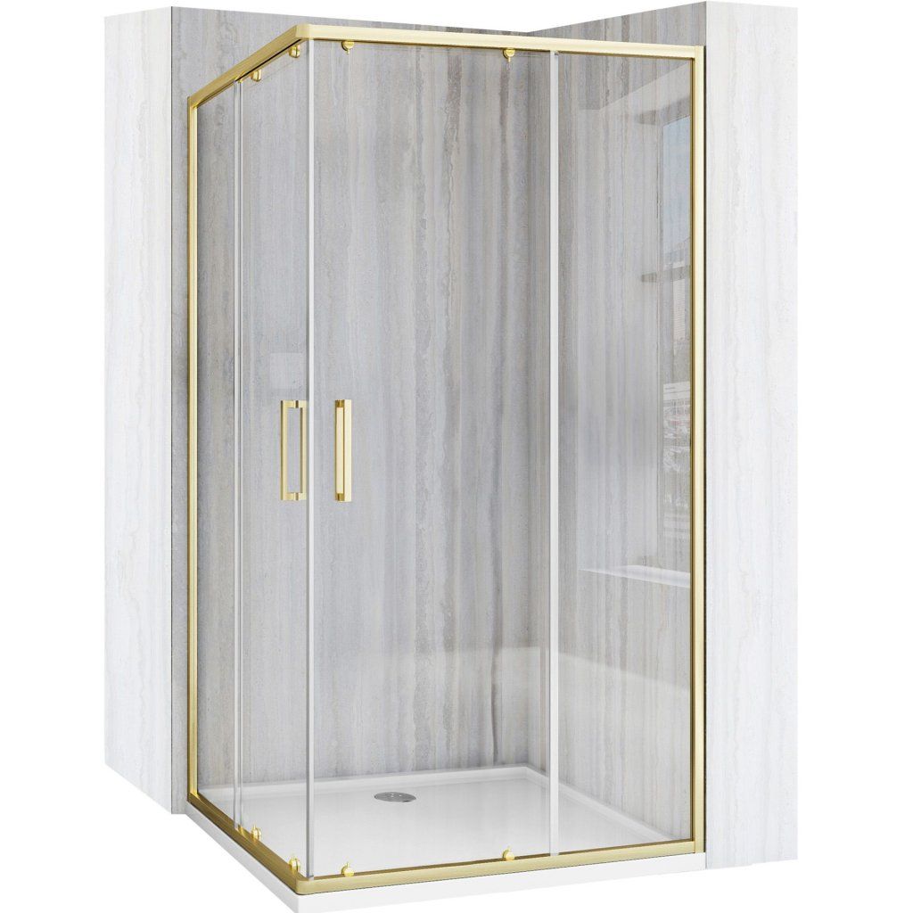 Rea City, sprchovací kút s posuvnými dverami 100x80cm + biela sprchová vanička Savoy, zlatý matný profil, KPL-K74501