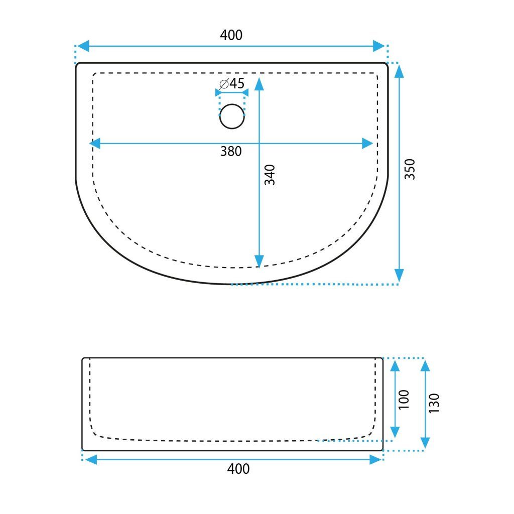 Rea Clara, umývadlo na dosku 400x350x130 mm, biela lesklá, REA-U0631