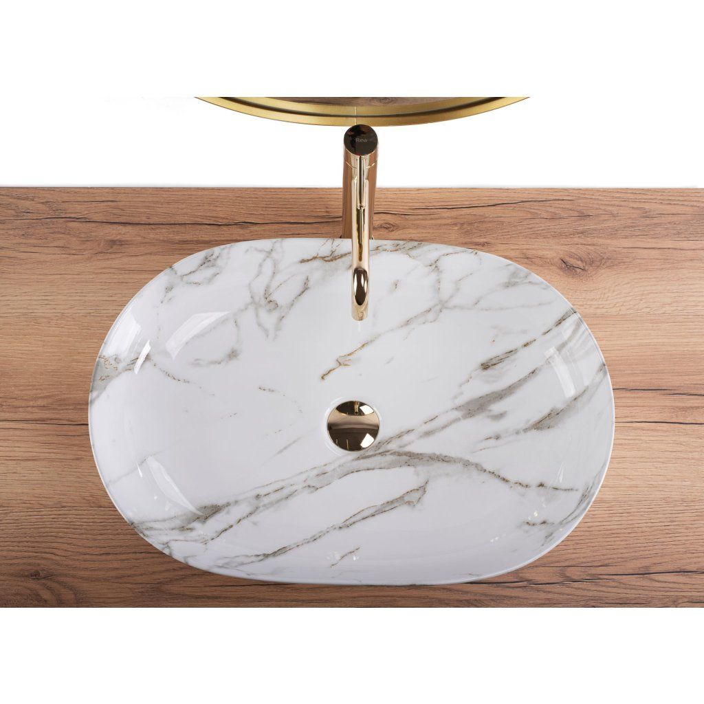 Rea Cleo Aiax, umývadlo na dosku 605x410x120 mm, biela-imitácia kameňa Aiax, REA-U9656
