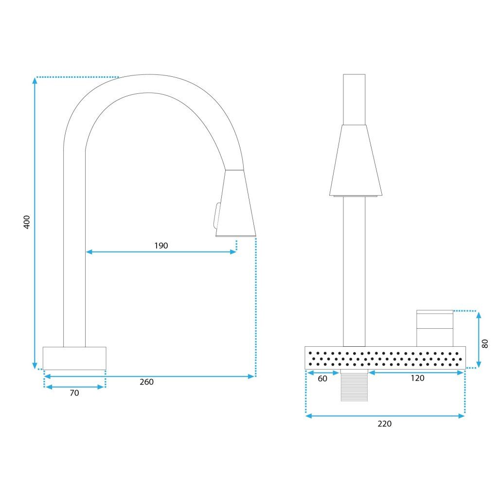 ✔️Rozsah výtoku: výsuvný hrot
