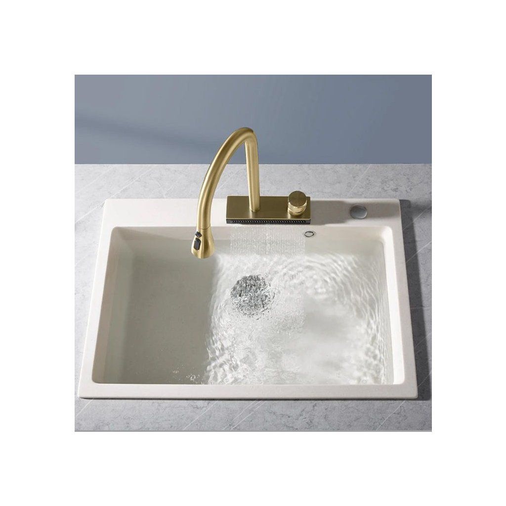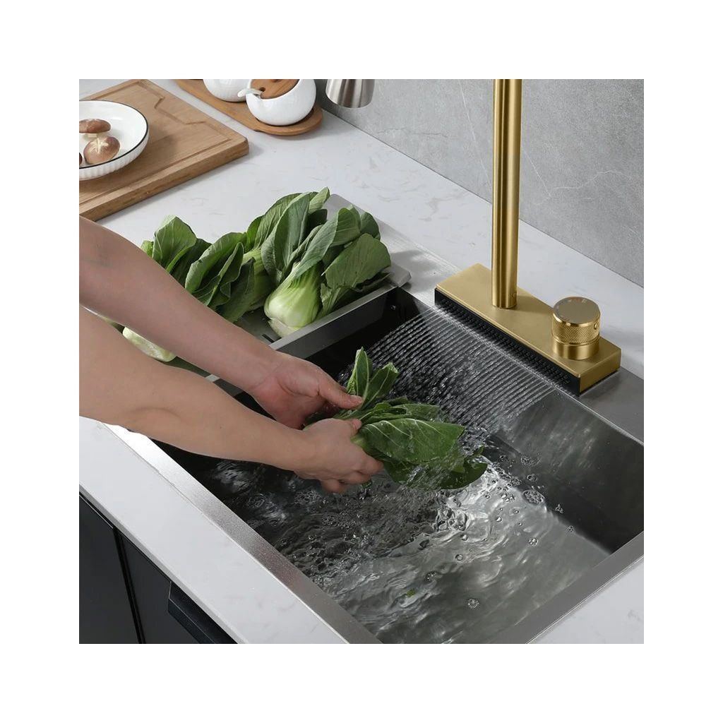 Vodopádový panel, ktorým je batéria Conor vybavená, zvyšuje jej funkčnosť a umožňuje pohodlné umývanie zeleniny a ovocia. Prúd vodopádu je jemný a rovnomerný, takže sa vyhýbame postriekaniu.
