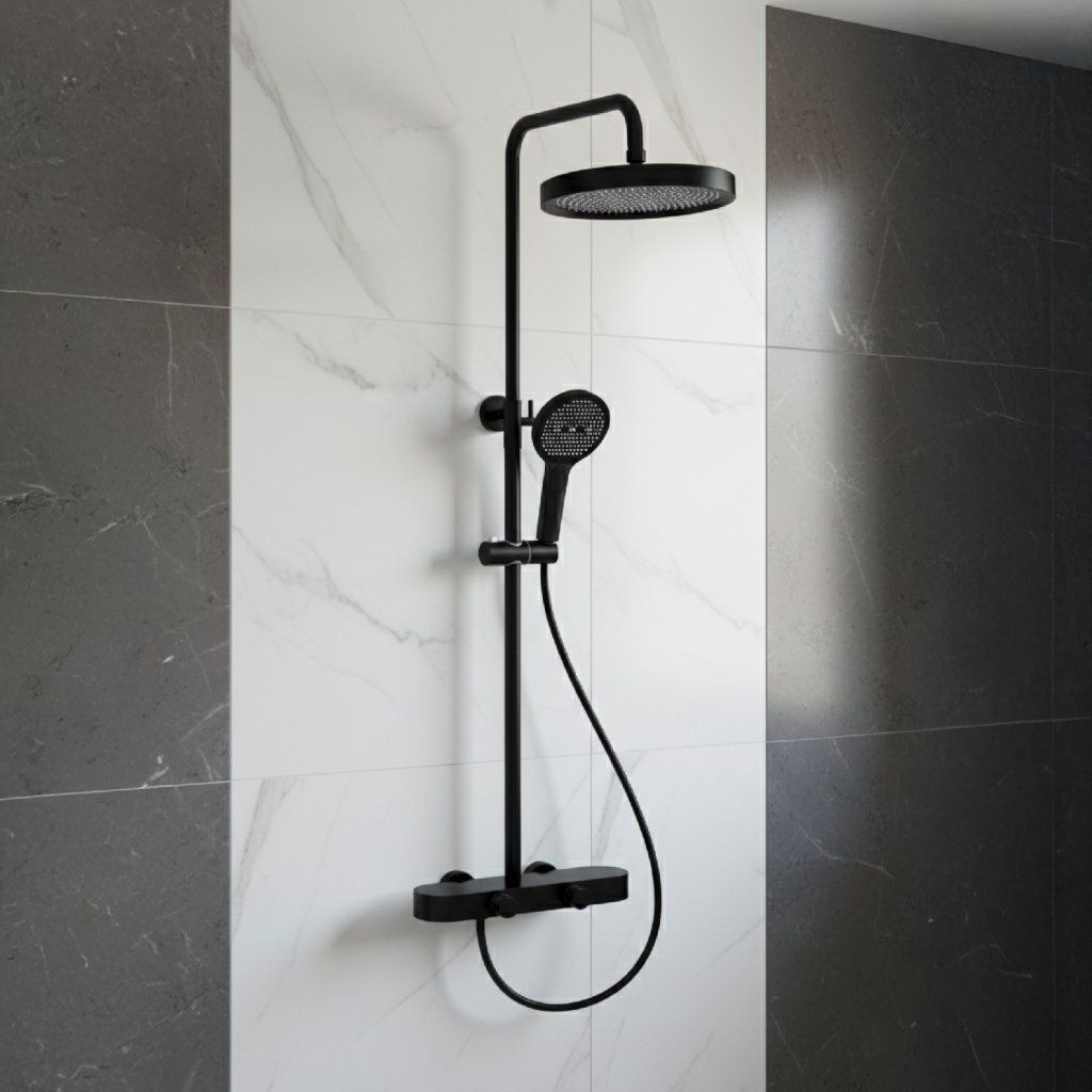 REA Creo je moderná nástenná sprchová súprava, ktorá spája elegantný dizajn v odtieni čierna matná s vysokým komfortom používania. Minimalistické línie a luxusná povrchová úprava sa skvele hodia do moderných, loftových aj industriálnych kúpeľní. Súprava je navrhnutá s dôrazom na funkčnosť, jednoduché ovládanie a dlhodobú spoľahlivosť.