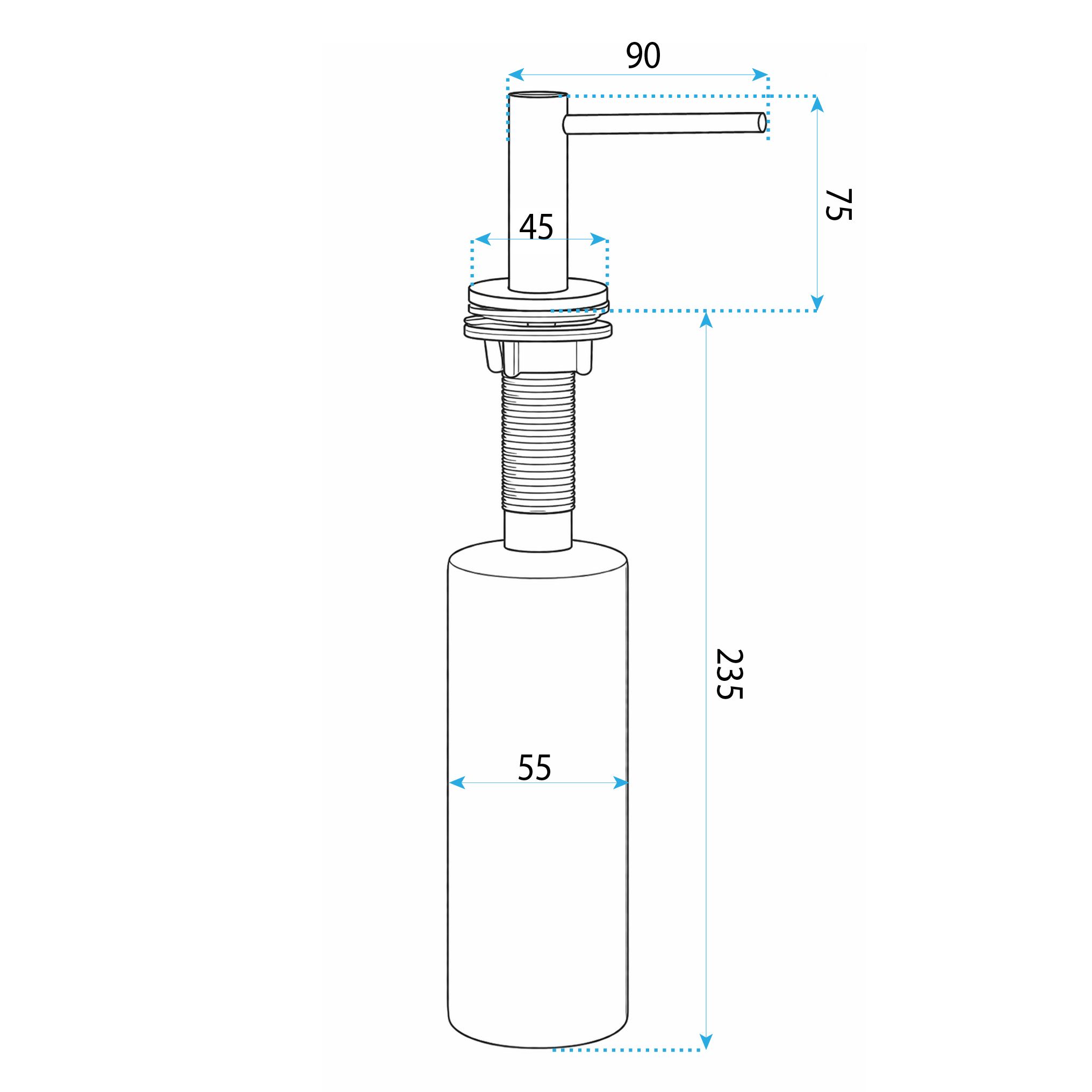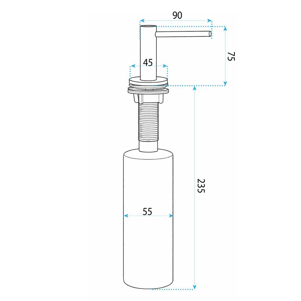 Štíhly "SLIM" profil dávkovača zaberá minimum miesta v otvore drezu alebo pracovnej dosky, pričom maximalizuje vizuálny efekt. Montáž je zabudovaná — neestetické fľaše saponátu miznú z pohľadu a kuchynská linka pôsobí čisto a reprezentatívne.
