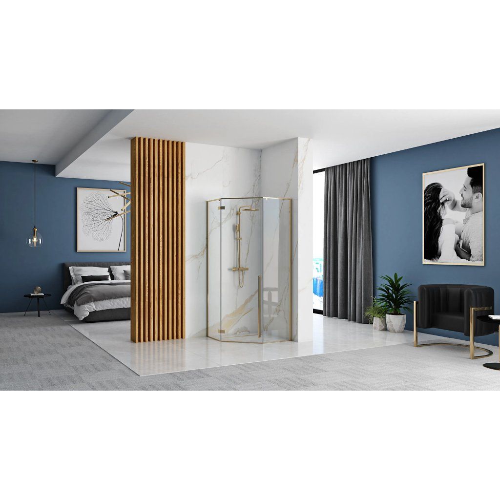 Rea Diamond Gold, päťuholníkový sprchový kút 100 x 100 cm, 6mm číre sklo, zlatá lesklá, REA-K6616
