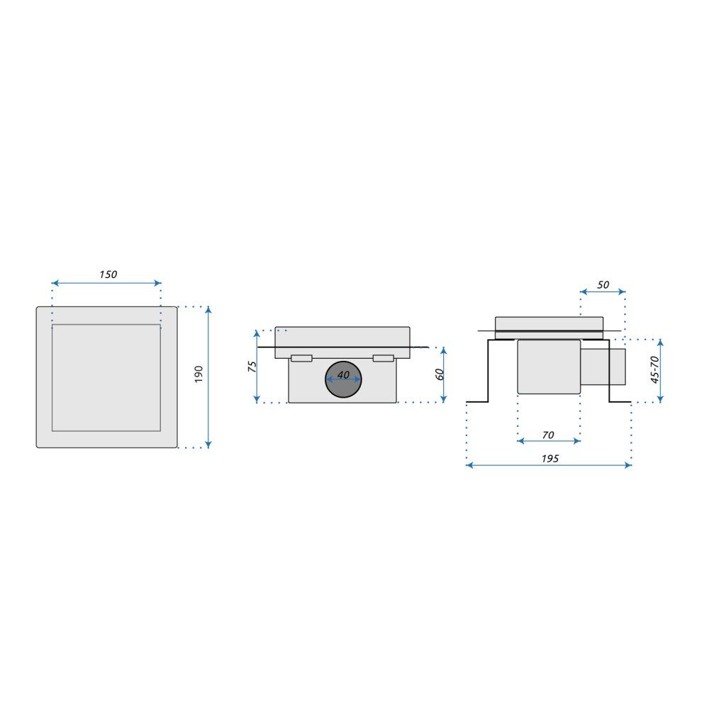 - Odtok sifónu: 40/50mm