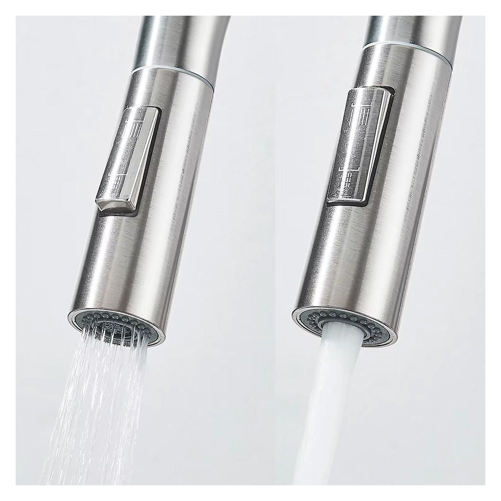 ➡️ Batéria je vybavená otočným telom, ktoré umožňuje voľne nastaviť smer prúdu vody. Prúdový spínač umožňuje rýchlu zmenu typu prúdu vody, čo vám umožní prispôsobiť ho rôznym úlohám v kuchyni – od plnenia hrncov až po umývanie zeleniny, čo poskytuje pohodlie a efektivitu pri každodennom používaní.