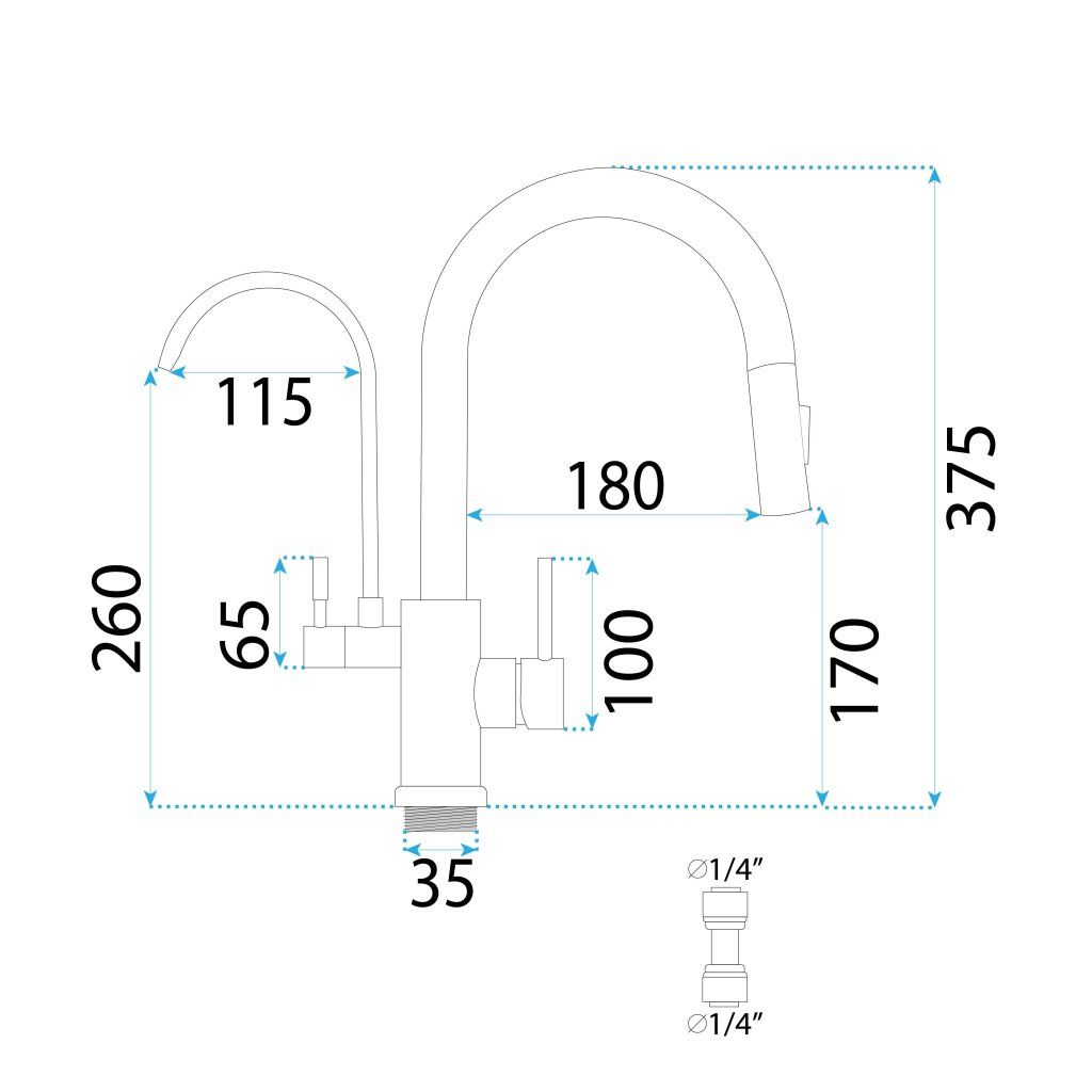 - Priemer pripojenia vodného filtra: 1/4 palca