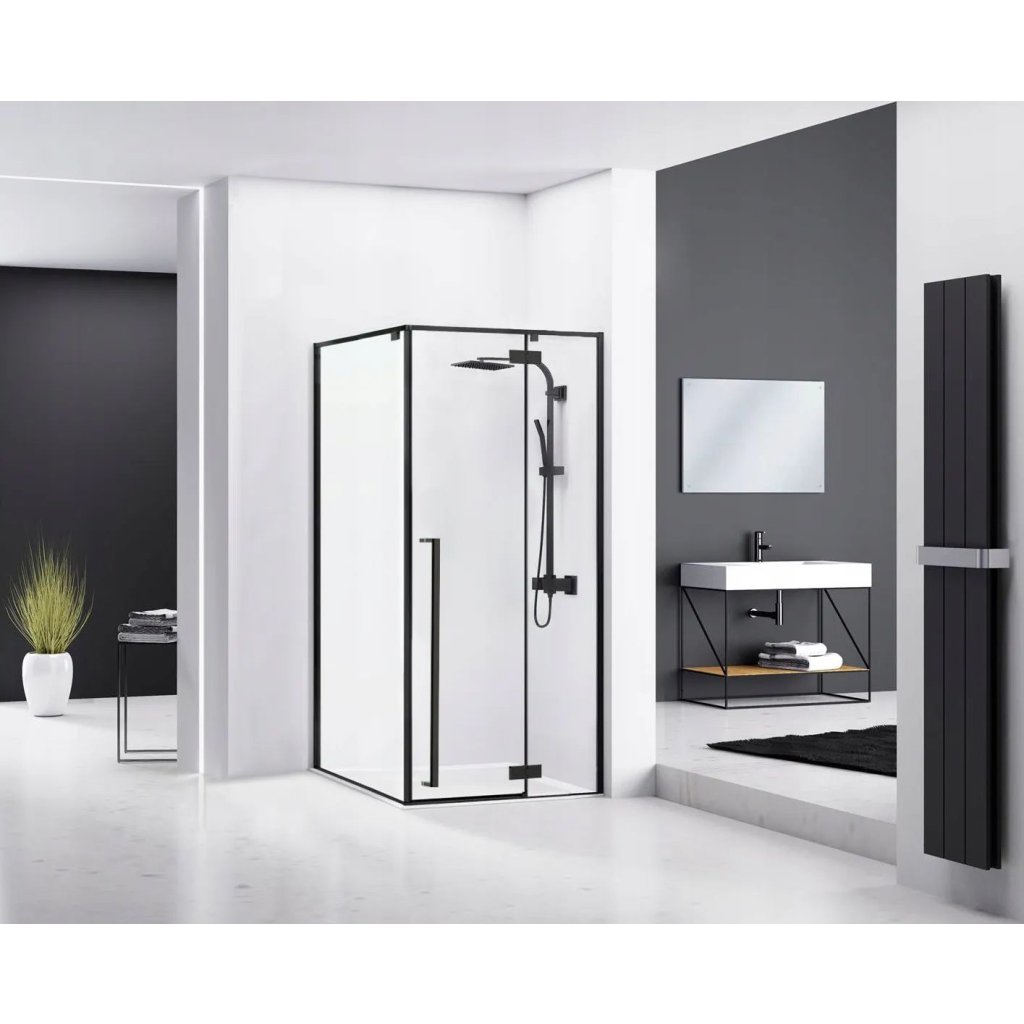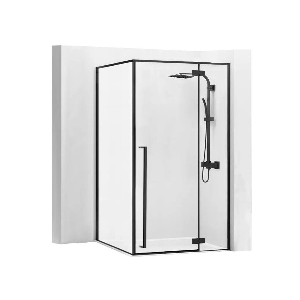 Rea Fargo, sprchový kút s krídlovými dverami 100 (dvere) x 80 (stena) x 195 cm, 6mm číre sklo, čierny profil + čierna sprchová vanička Savoy, KPL-K4909