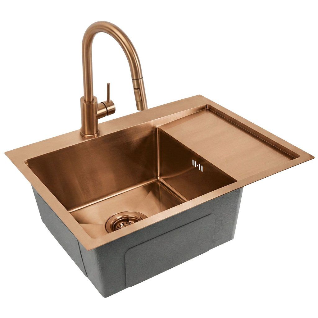 Rea Fin, 1-komorový nerezový drez 620x480x185 mm, brúsená meď, ZLE-06018