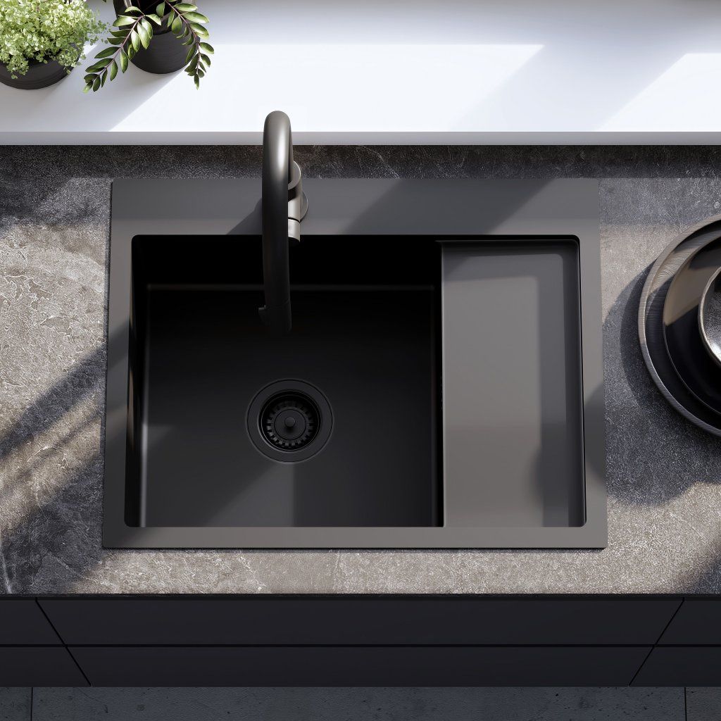 Rea Fin, 1-komorový oceľový drez 620x480x185 mm, čierna matná, ZLE-06014