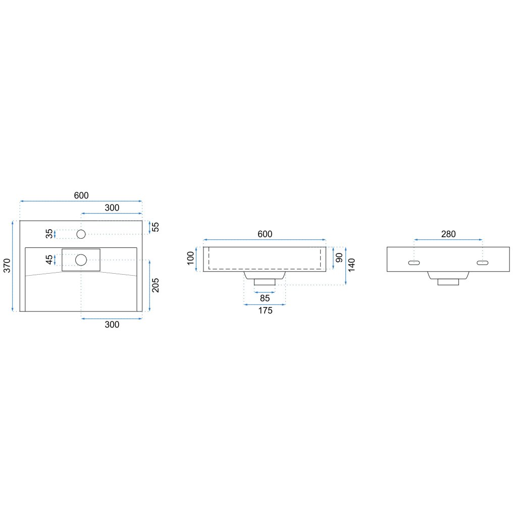 - Hĺbka umývadla: 90m cm