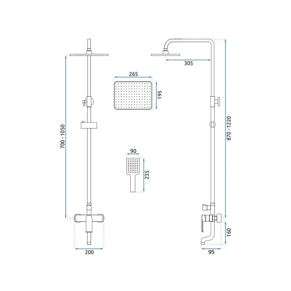 - Súprava obsahuje: vodovodnú batériu, sprchovú hadicu so slúchadlom, dažďovú sprchu, držiak na slúchadlo
