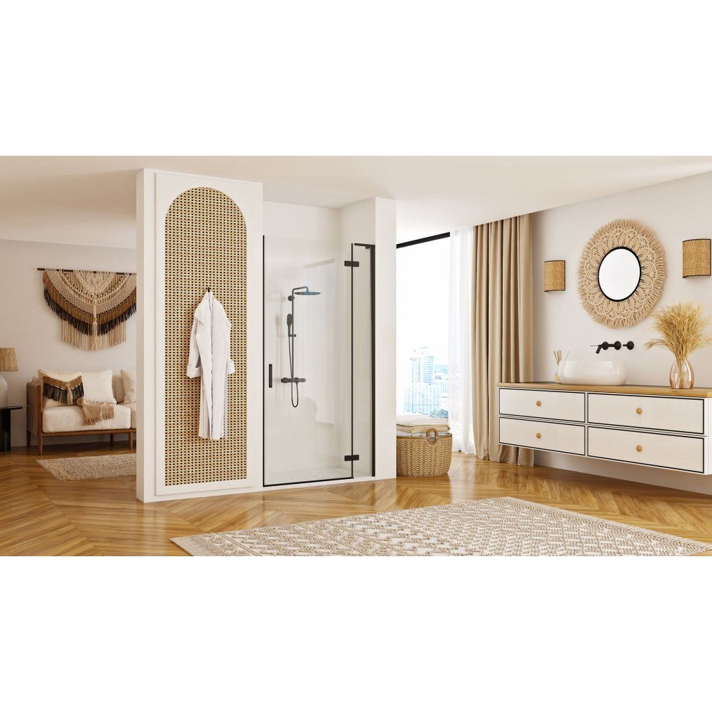 Rea Hugo, 1-krídlové sprchové dvere 80x200cm, 6mm číre sklo, čierny profil, KPL-45206