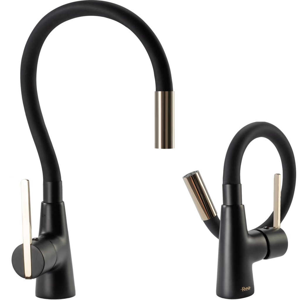 REA ICON - Vysoká umývadlová batéria Flexi rameno, zlatá/čierna, REA-B5682