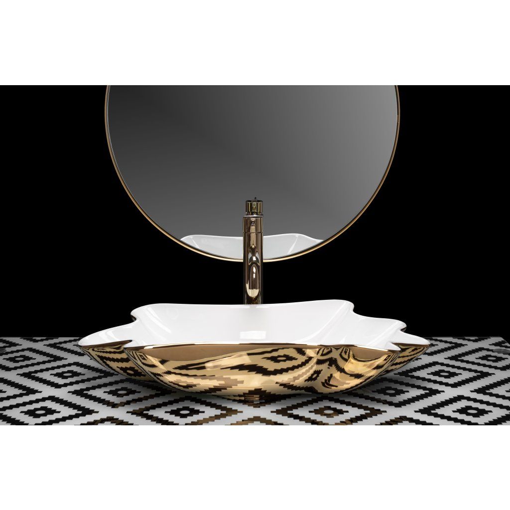 Rea Infinity, umývadlo na dosku 620x330x115 mm + odtoková zátka Click-Clack, biela-zlatá lesklá, REA-U3400
