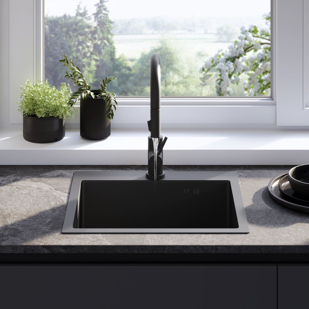Rea Leo, 1-komorový oceľový drez 500x450x185 mm, čierna matná, ZLE-06005
