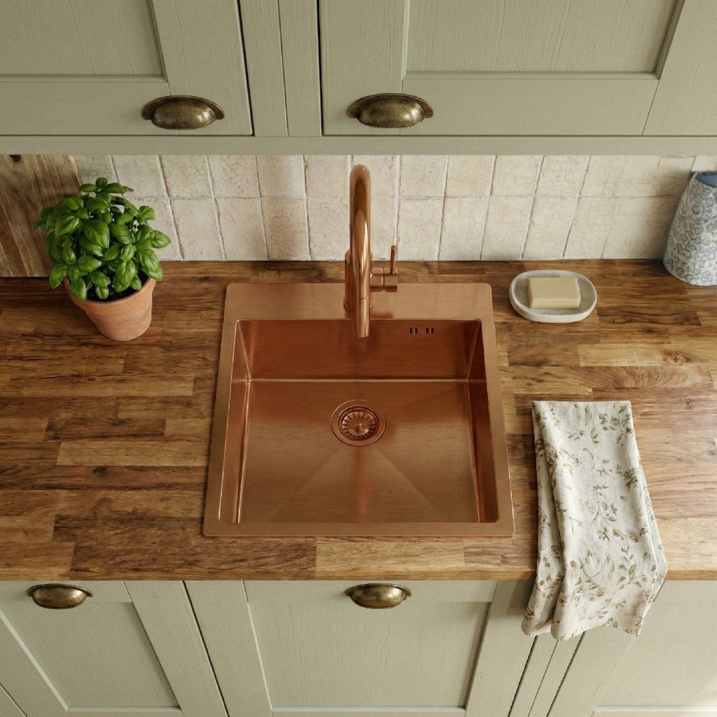 Rea Leo 40, 1-komorový nerezový drez 400x450x185 mm, medená matná, ZLE-06016
