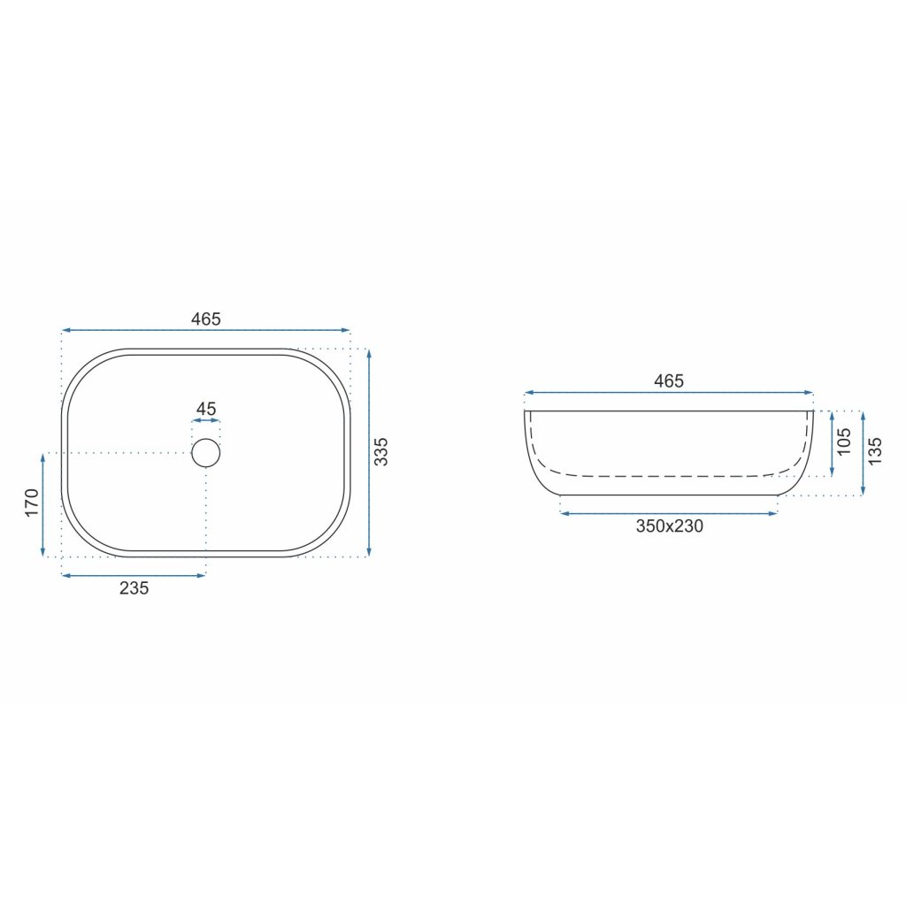 Umývadlo je prispôsobené na montáž na dosku alebo skrinku. Bolo vyrobené z kvalitnej sanitárnej keramiky. Vďaka špeciálnej výrobnej fáze je odolný a ľahko sa čistí.