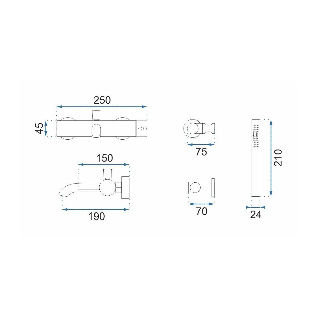 - Obsah súpravy: nástenná batéria, sprchová hadica, sprchová ručná hlavica s bodovým držiakom