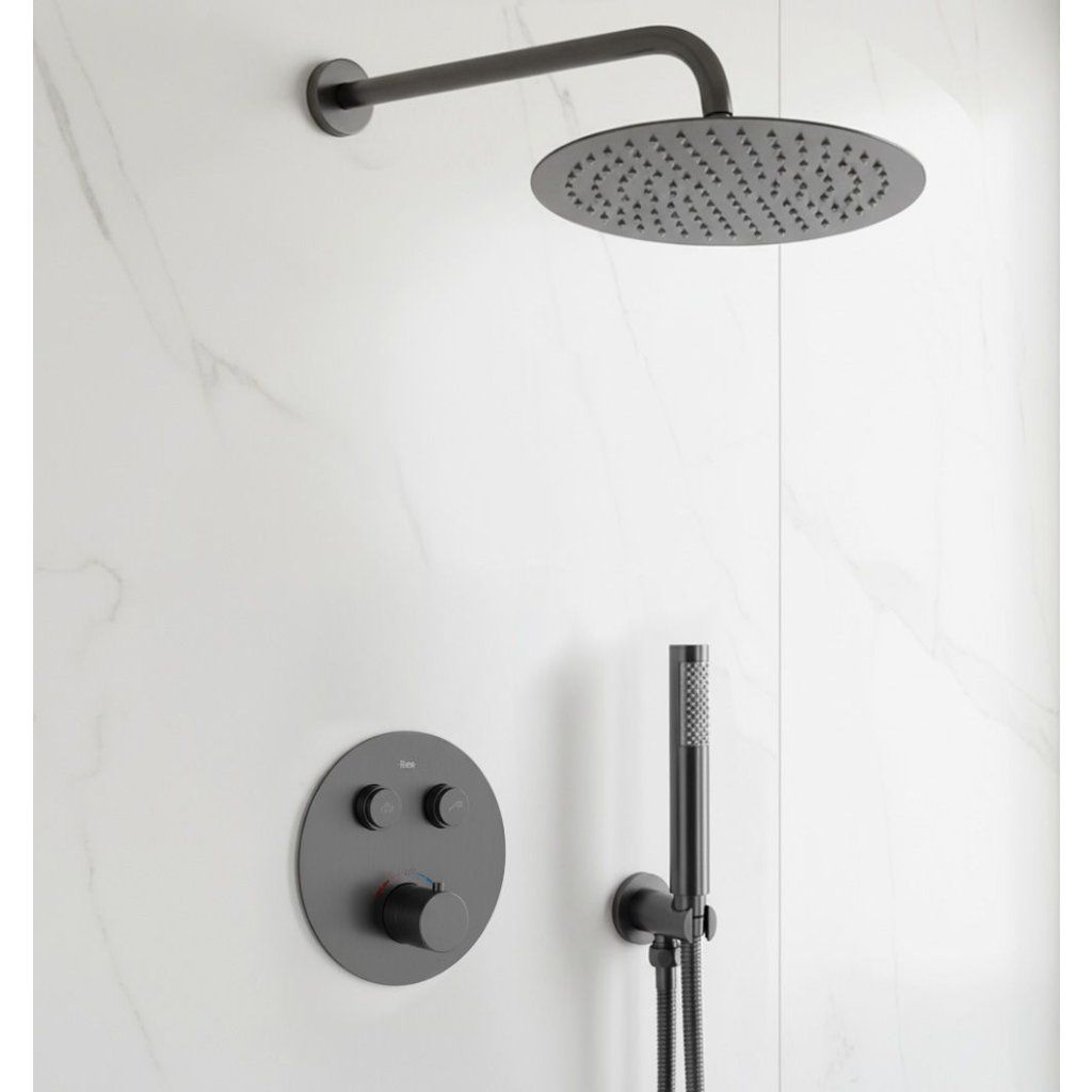 Rea Lungo, termostatický sprchový set pod omietku s dažďovou hlavovou a ručnou sprchou, grafitová matná, REA-P6385