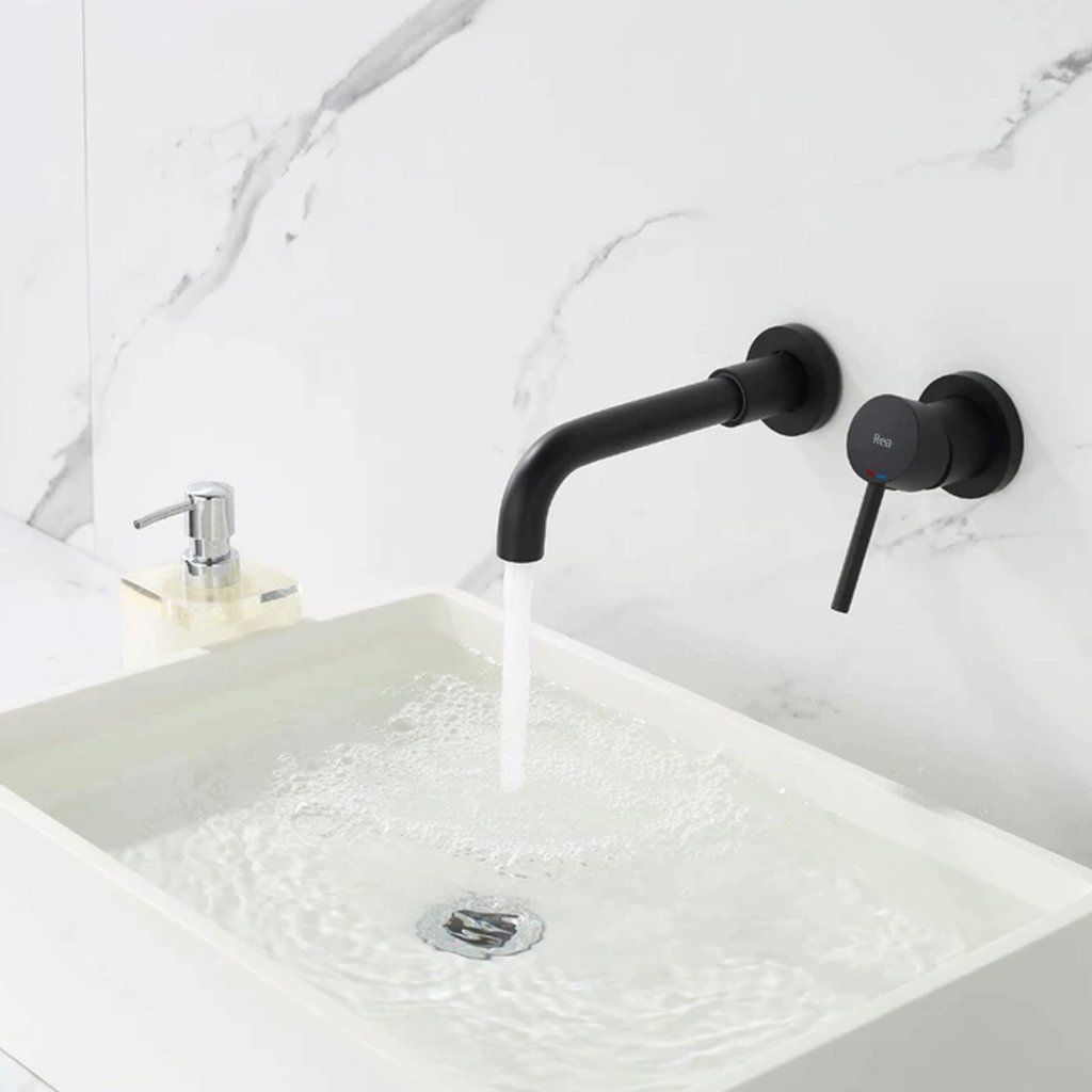 Rea Lungo Long, podomietková umývadlová/vaňová batéria + BOX, čierna matná, REA-B0371