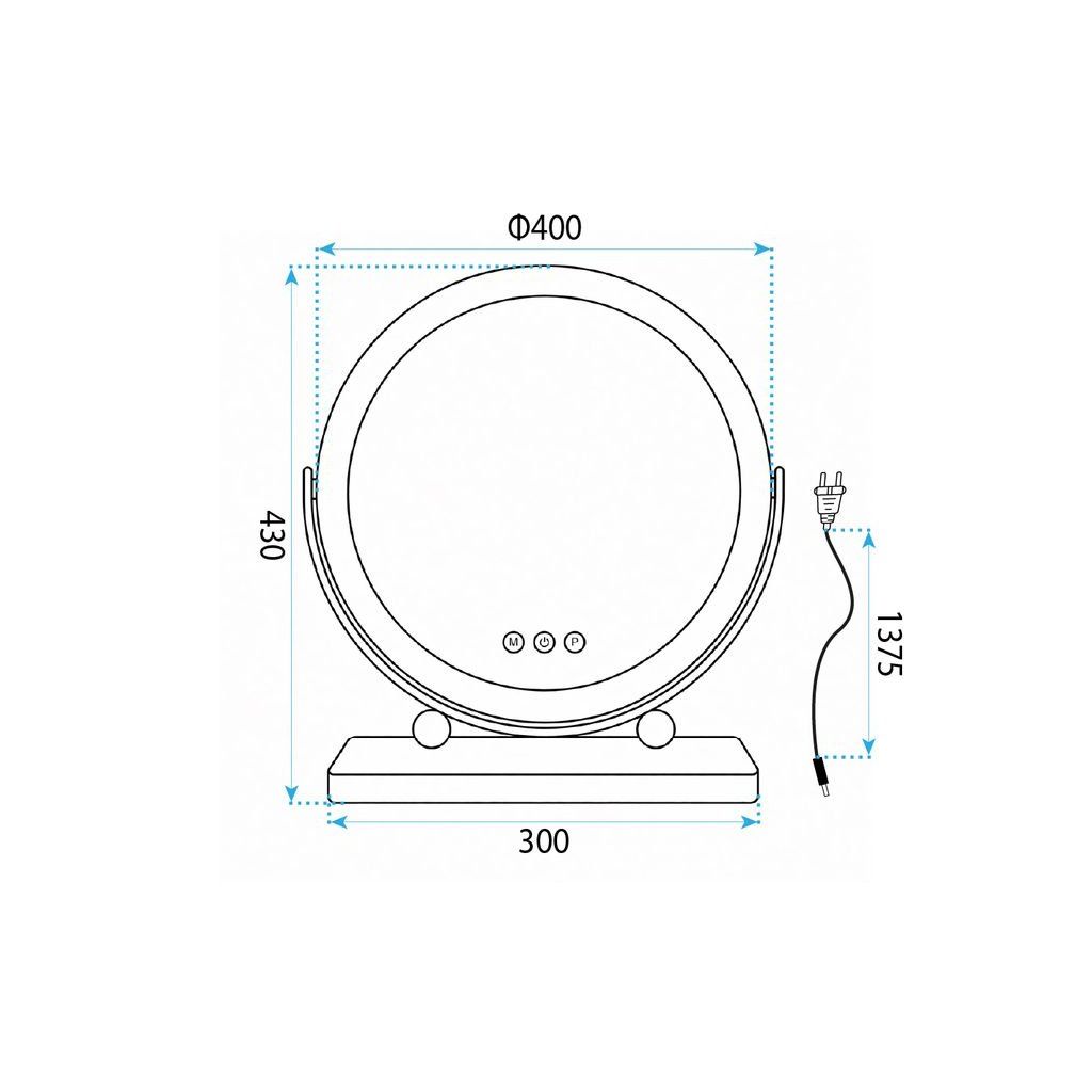 - Rozmery: výška 430 mm, ∅ zrkadla 400 mm, hĺbka podstavca 120 mm