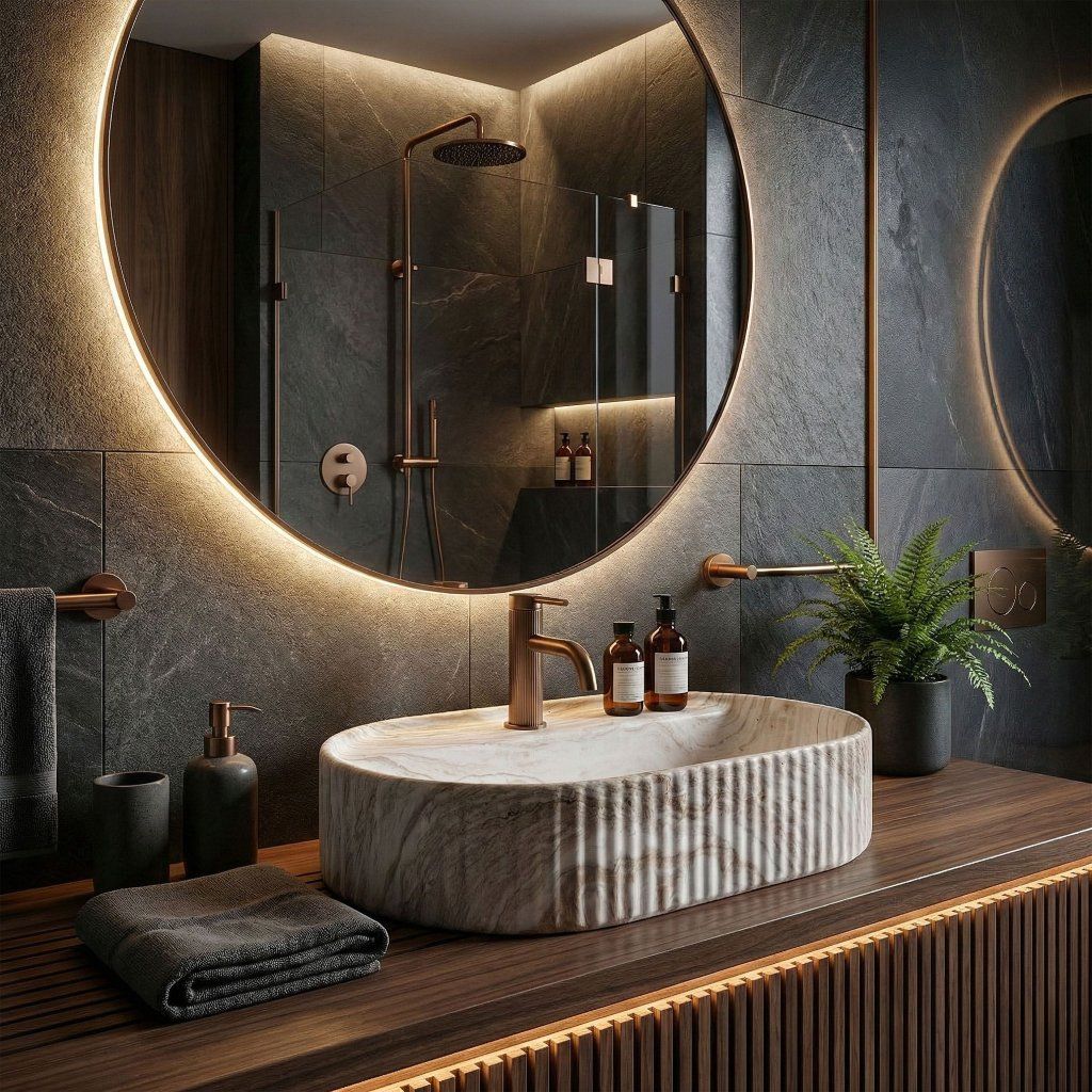 moderný ryhovaný dizajn, ktorý dodáva kúpeľni luxusný charakter