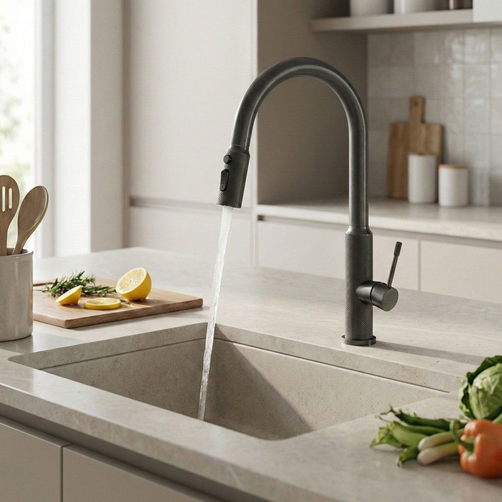Rea Master je moderná kuchynská batéria navrhnutá pre maximálnu funkčnosť a výrazný dizajn. Povrchová úprava grafitová matná dodáva batérii elegantný a industriálny charakter, ktorý sa výborne hodí do moderných aj loftových kuchýň. Kombinácia výsuvného výtoku, pevnej mosadznej konštrukcie a odolnej povrchovej úpravy zaručuje pohodlné používanie aj dlhú životnosť.