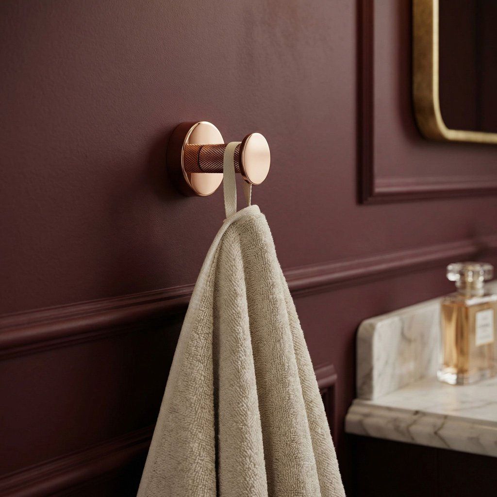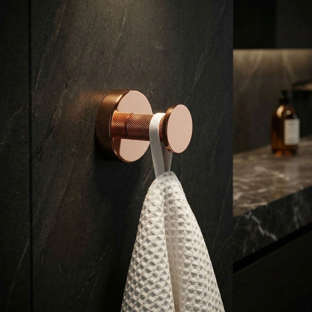 Bodový vešiak s rozmermi 50×50×50 mm je navrhnutý pre situácie, keď na stene nie je dostatok miesta pre väčší doplnok — úzka stena vedľa umývadla, priestor medzi zrkadlom a rohom, alebo doplnkový vešiak v sprchovom kúte. Napriek miniaturálnym rozmerom drží spoľahlivo aj ťažší župan.