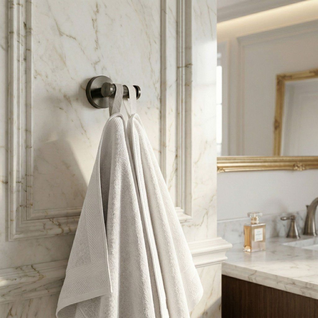 Dvojitý vešiak na ploche jediného kotevného bodu šetrí miesto na stene v porovnaní s dvoma samostatnými háčikmi. Praktické riešenie pre rodiny, páry aj kúpeľne s obmedzeným priestorom.