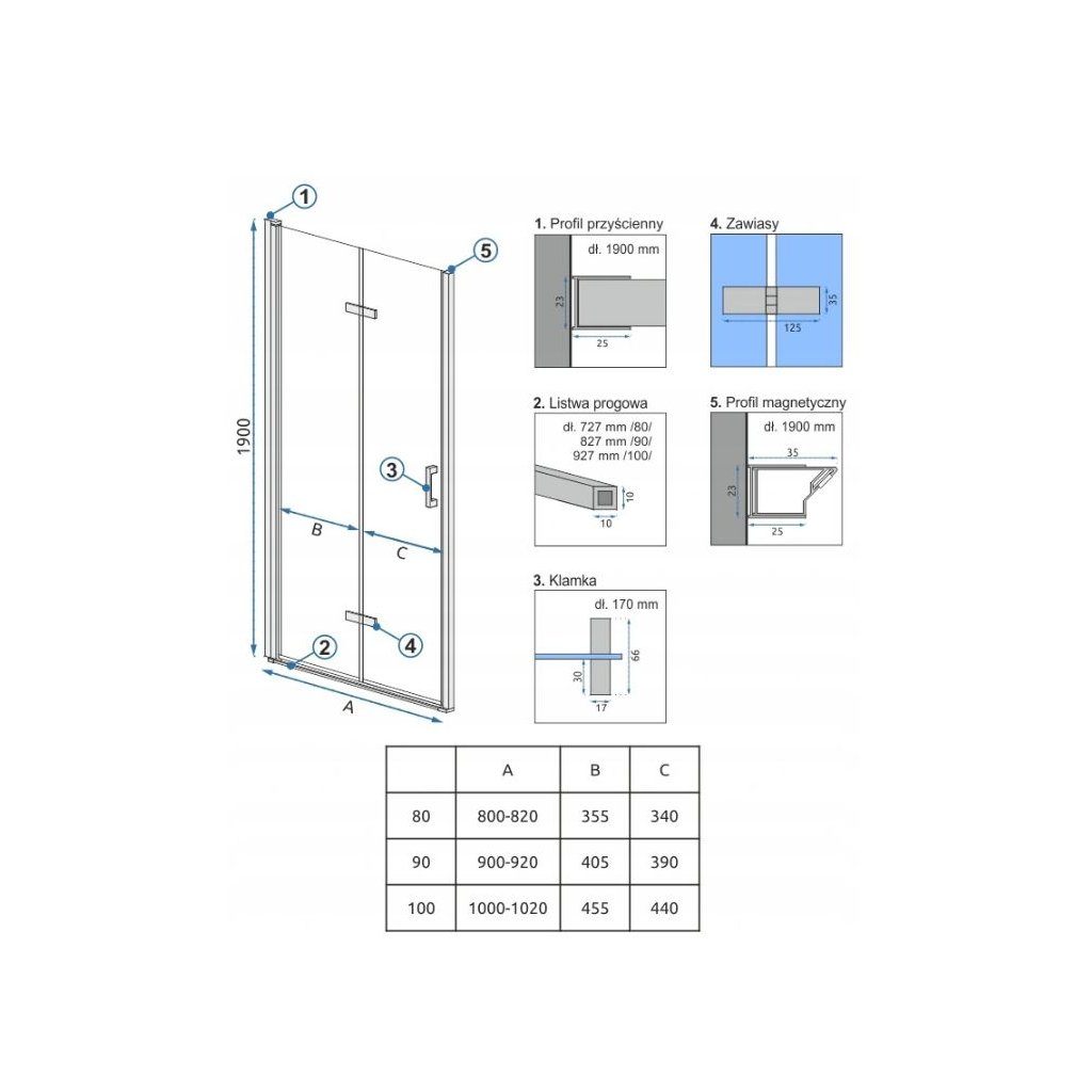 Pre inštaláciu sprchových dverí MOLIER do otvoru je potrebné zakúpiť magnetický uzatvárací profil REA-K3261