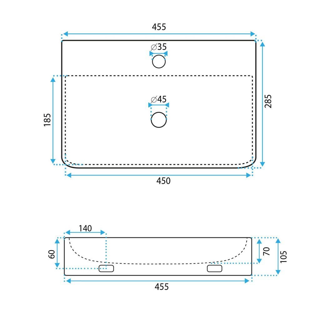 | Dĺžka umývadla: | 455 |