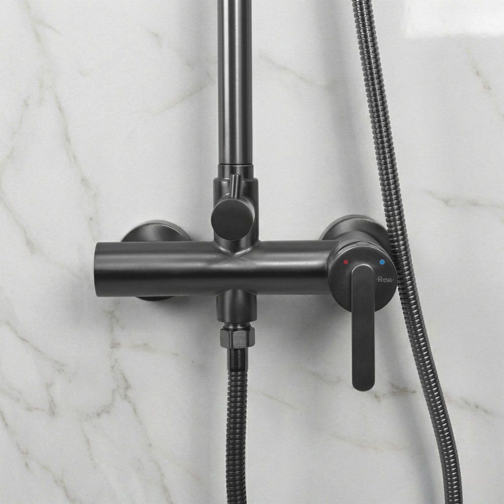 Rea Ontario, sprchový set nástenný s dažďovou sprchou, grafitová matná, REA-P9495