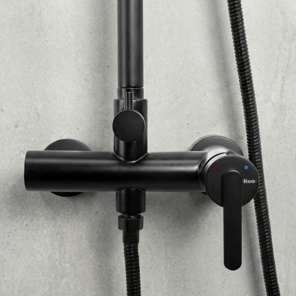 Rea Ontario, sprchový set s ručnou a hlavovou sprchou, čierna matná, REA-P5712